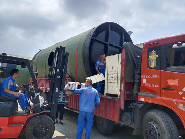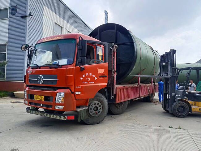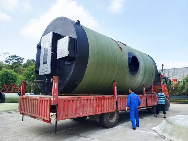 我司用戶定制玻璃鋼一體化預制泵站生產完成裝車發(fā)貨現(xiàn)場,應用鹽亭污水收集提升項目!