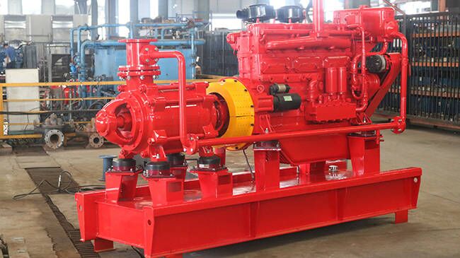 我司大型柴油機(jī)臥式多級消防泵組應(yīng)用市政建設(shè)消防噴淋系統(tǒng)